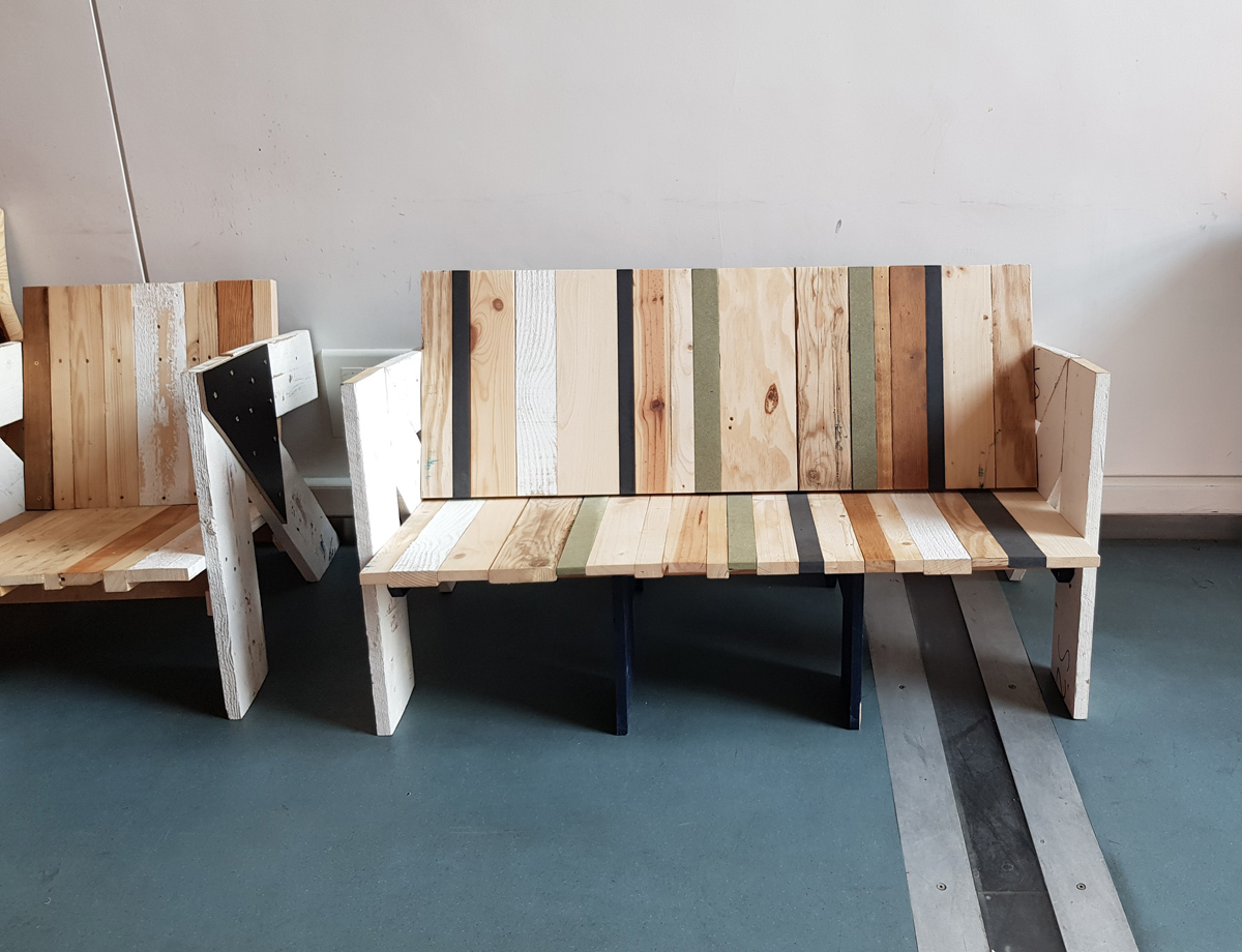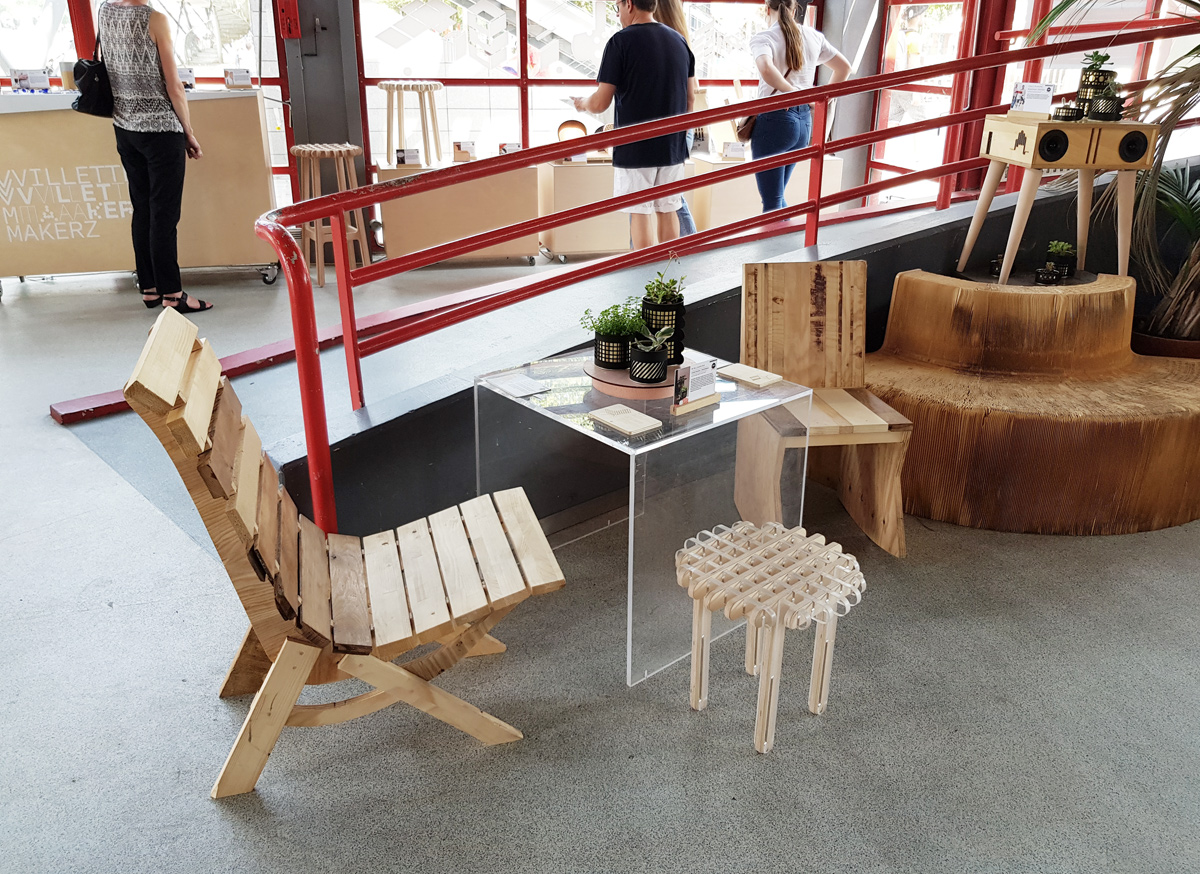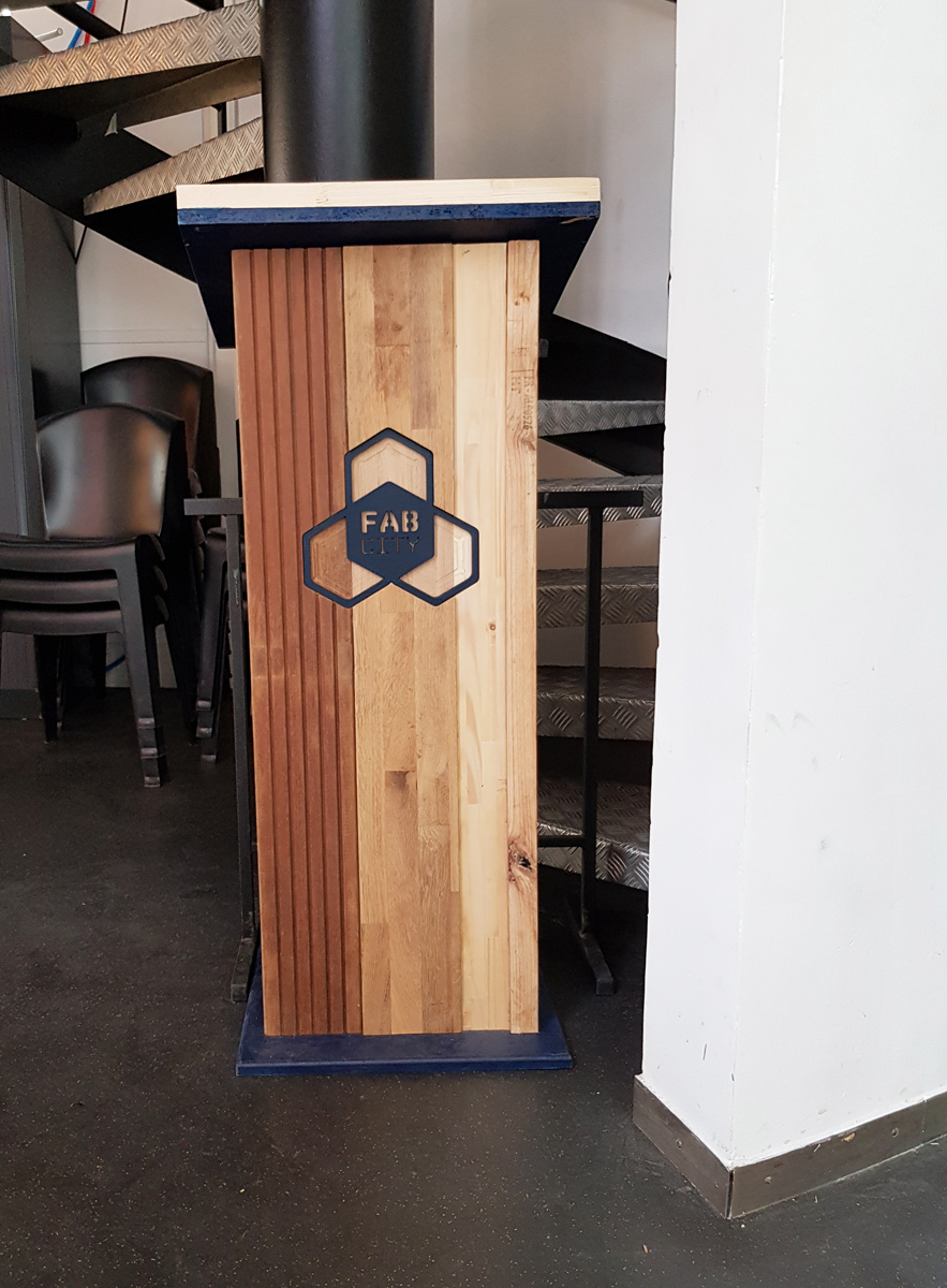 On nous a même demandé de faire le mobilier de la scène du Fab City Summit. Au total un pupitre, une table, trois chaises et un banc. Nous on est ravi !